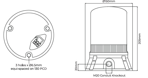 These beacons are of the Flashing mode type (single stage alarm) Xenon beacons (sometimes called strobes) are controlled via a PCB and put out a very brief but very bright flash of white light by ionizing and then discharging a large current through the xenon gas. The design allows for termination inside the enclosure.