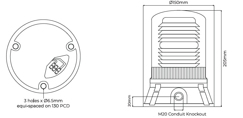 This range of beacons incorporates an internal Fresnel lens designed to maximise the light intensity and has a double flash option (activated by a jumper link on the PCB) that extends the signal duration making it more noticeable to the human eye.